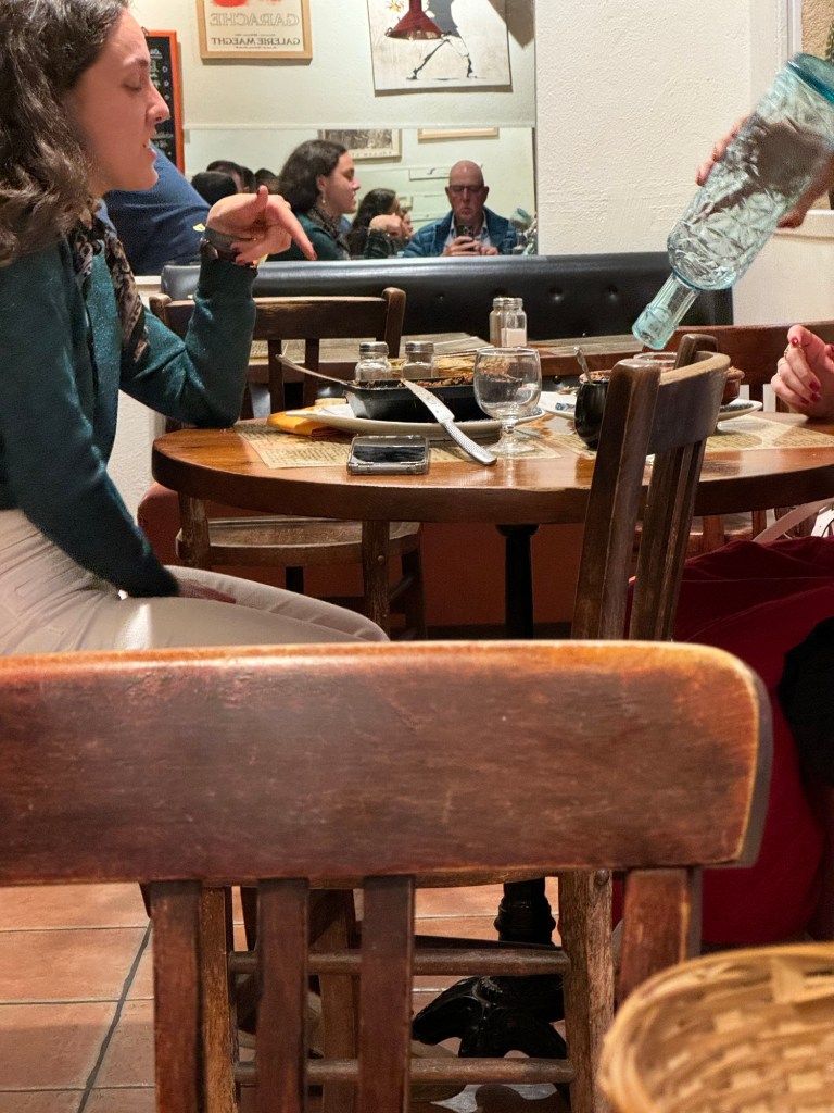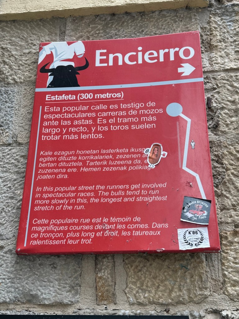Bar Gaucho PinxtosWonder if Hemingway was using that phone?In case you wanted to know how long it is till the nest running of the BullsThe French GateCalle St. Nicolas, big Tapas streetThis where Jost and Martin had the Tapas versus Pinxtos discussion the in the movie “The Way”