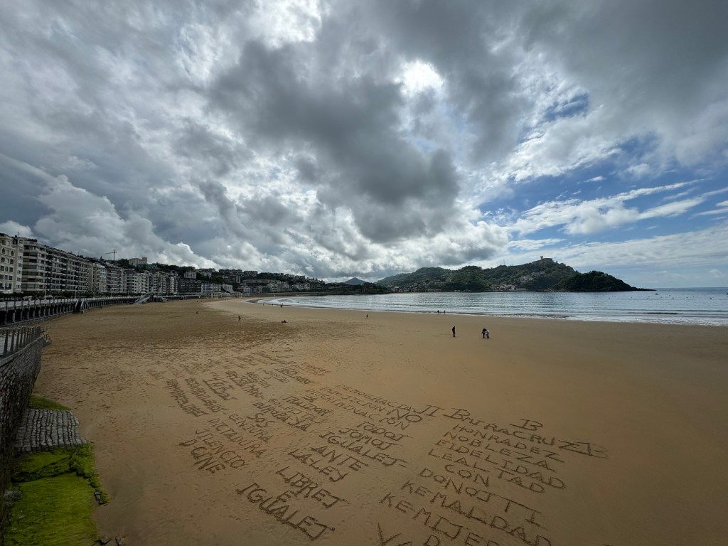 Started the morning with a walk to the Magdalena Bridge, where pilgrims cross to enter Pamplona. Rainy morning, but eventually abated. Bus to San Sebastián, this one an express. Driver maintained high rate of speed in spite of fairly heavy rain. Arrived to the minute on time, and then taxi to hotel at the top end of the old town. 4 star hotel but I’m in tiny singe twin bed room. Out for a walk and the little train tour. Then Tapas around town. Lovely happening place with a big Long Beach. Met a nice couple from London who are motorcyclists and have a place in southern Spain.
