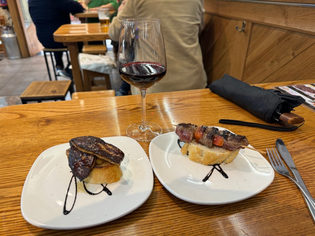 San Sebastián has a big hill at the top of the old town with a fort, museum and chapel on the top. So, for today, decided to climb to the top. First headed to Simona a nice coffee shop and when I came out there was huge running race going on with 1000s of people running by. Managed to skirt that and make the climb. After descending it was time for a lunch snack, the place I ended up near my hotel had Albariño for 2.40 a glass and a free serving of paella came with it. Can’t really argue with that. Took some down time this afternoon as was dragging a little, then out for a few pinxtos for dinner. As usual, started raining late evening, but it does seem to pass in about an hour. Off to Bordeaux in the morning.
