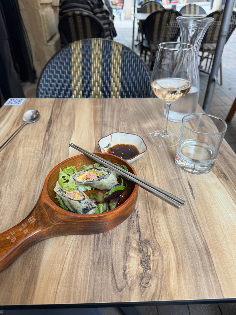 Started the day with heading to a cafe on the other side of town recommended by the “Lost in Bordeaux site” called Cafe Eriu. Had a good chat with the Barista who is from London and had some good restaurant recommendations. After headed into the spectacular public gardens. Large and nicely done. From there headed over to the wine negotiants museum. This was a well curated series of cellars followed by a nicely explained tasting of only 2 different wines, but the explanations were interesting. From there a lunch at Les Valliants recommend by the barista. Then it was off to the Musee d’Aquitaine, which does Bordeaux history pretty much from the Stone Age. I skipped up to more modern times but was interested in their rather forthright treatment of the slave trade. Nantes seemed to be a bigger transhipment point, but Bordeaux was definitely in the midst of it. After that it was off to the Ecole du Vin for a tasting, and luckily I got a waitress who was an enthusiast and happy to do small pours for me so I could taste some different things.