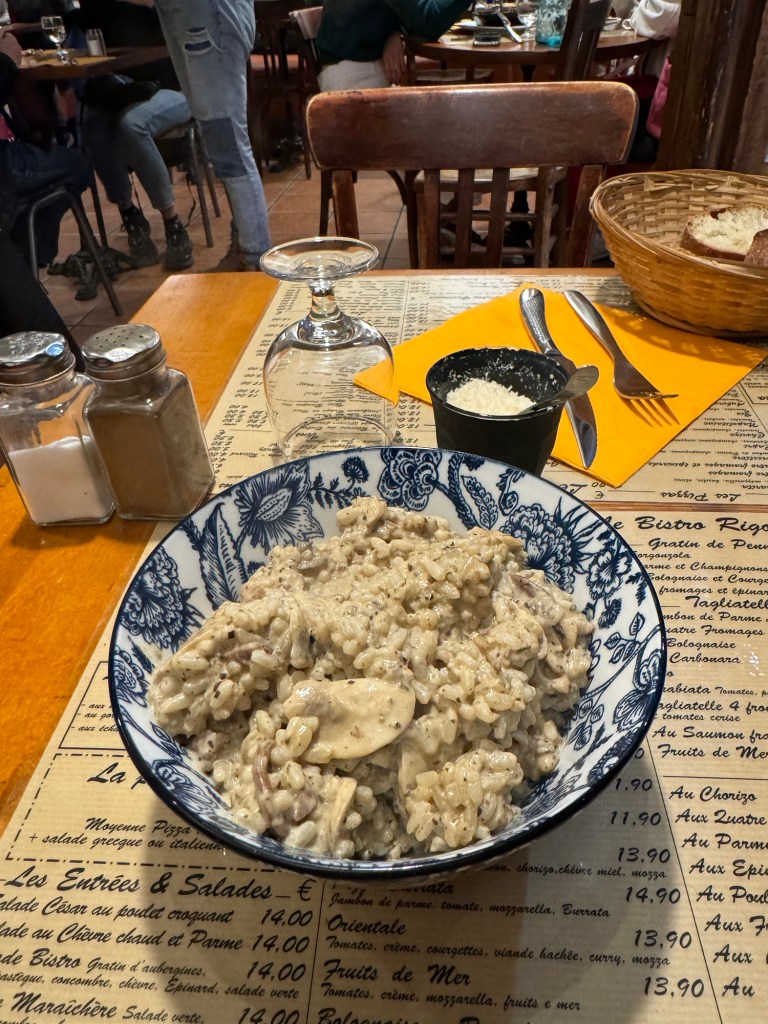 Jardin publicHawaii themed cafe, translates as the 4th wave. His mother came to Bordeaux from Hawaii as a student and never left.Negotiant museum Duck with beet sauce at Les ValliantsTasting at Ecole du Vinmushroom risotto, Rigoletto.La Bande de Roro, great wine bar. Grand Theatre CathedralMirrorRigoletto restaurant