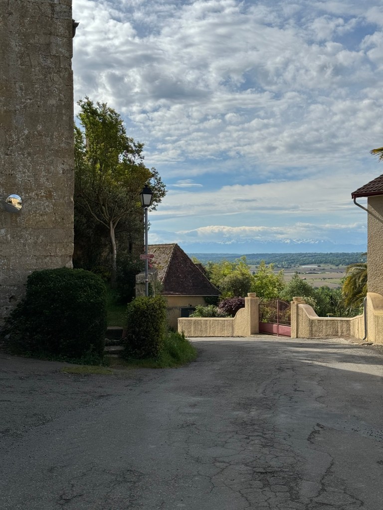 Navarrenx was a pleasant town with a few cafes and a nice feel to it. Today was the Ascension, so another holiday in France. This resulted in extremely crowded walking, at one point I counted 30 pilgrims! To understand this, it is part of May in France that everyone “faire le Pont” or makes the bridge. If a holiday is on Wednesday and or Thursday you can take the Friday off and end up with 5 days off only using one vacation day. So, I think part of the crowds had to do with that. Lovely weather today but still lots of sucking mud. Got up and just trudged along, beautiful mountains in the background. Eventually after a stop for a snack, got off the trail to Charritte le Bas where the Gite owner picked me up promptly. Spectacular property with a wedding for 40 people this evening, so I’m sure that it is going to be an experience. 23,000 steps.