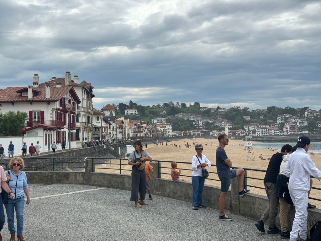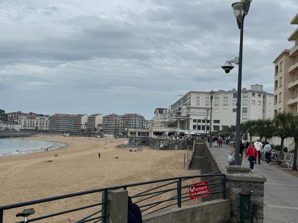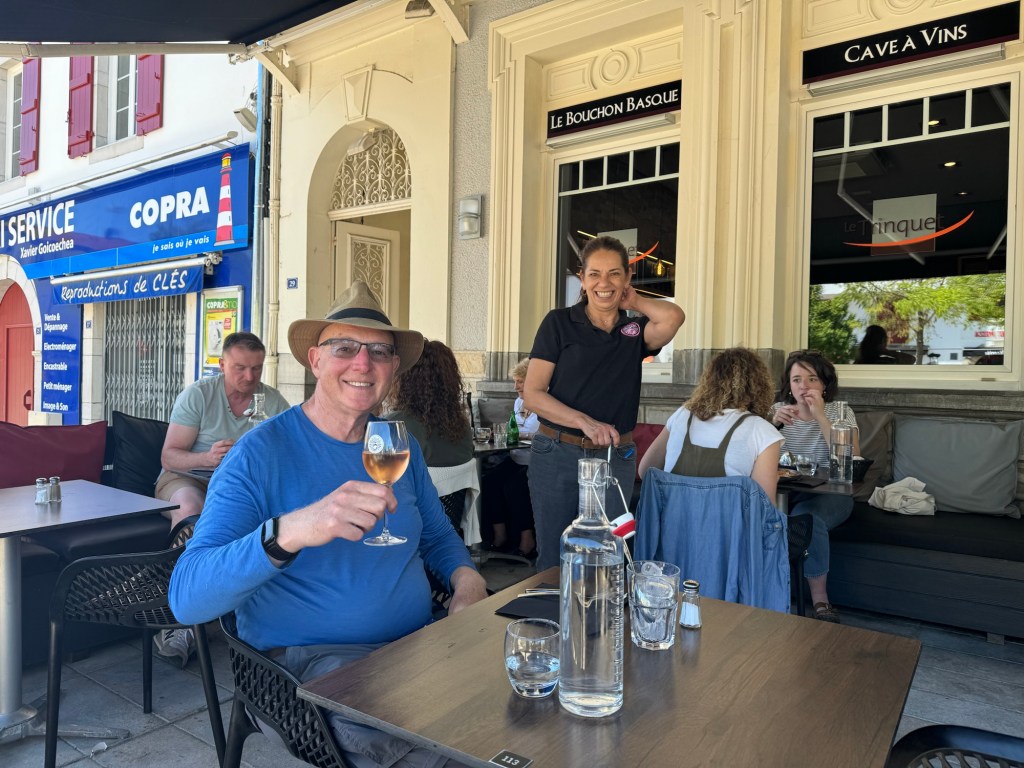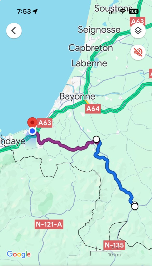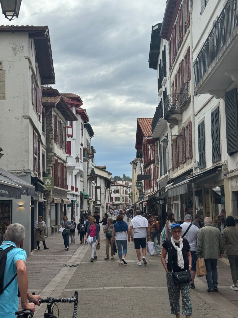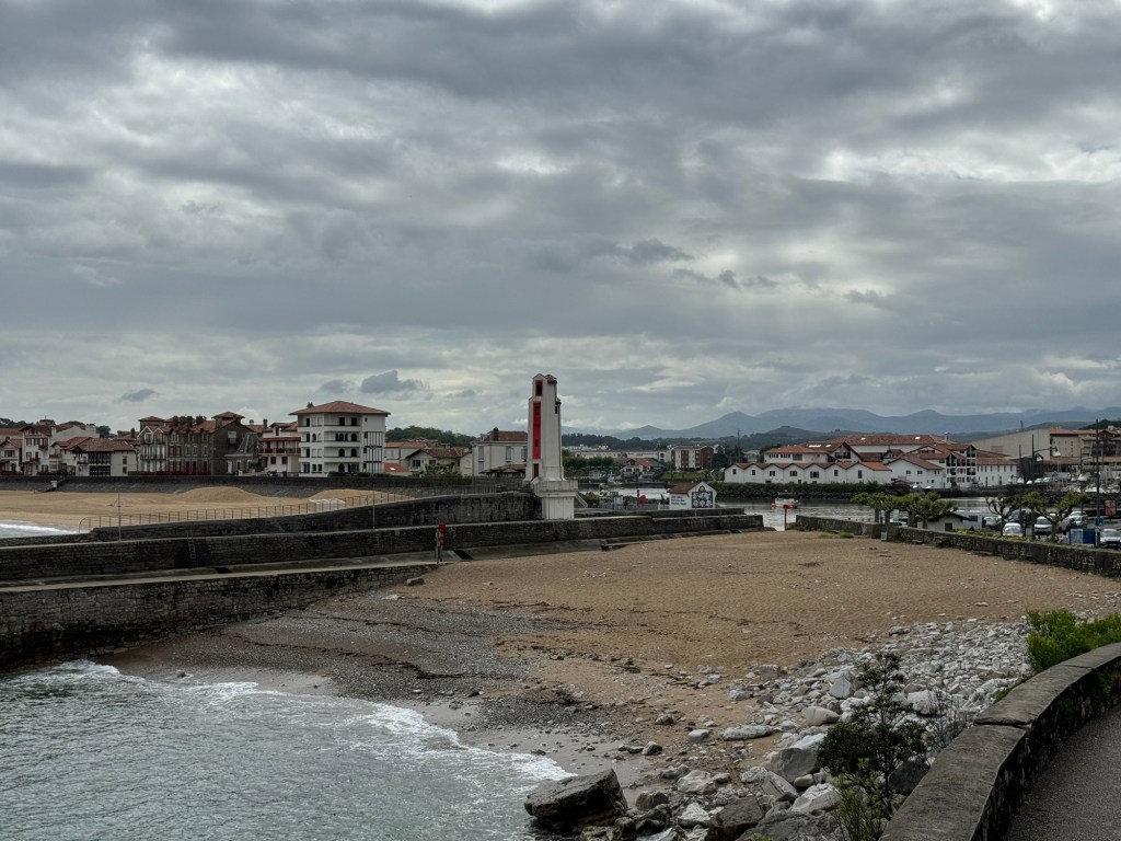 After a pleasant dinner last night with the group of 6 French people I’ve been walking with, it was time to call it an early night. Was woken up by an early text that told me my train from SJPP to Bayonne was canceled. After heading to the station a very helpful station master offered to call a taxi at SNCF expense. Went back got my stuff, and of course, that didn’t happen. So they did substitute a bus. But, the bus took about 20 minutes longer thereby missing my connection. Fortunately, another, local train was running an hour later, so ended up just buying a new ticket for that, about 4euros so not breaking the bank. Got to my AirBnB in Saint Jean de Luz and got installed. This is a small studio with a Murphy bed, but it does have a washer, something I definitely will be using! Did a little stroll around town and got some breakfast supplies, ran a load of wash. Found a good seafood place for dinner and had the variety shellfish tower for 25 euros. Bit of rain coming through so glad I wasn’t out walking today. The French group had a hard day as they were going over the Pyrenees to Roncesvalles, which is a long day if you do it in one go.