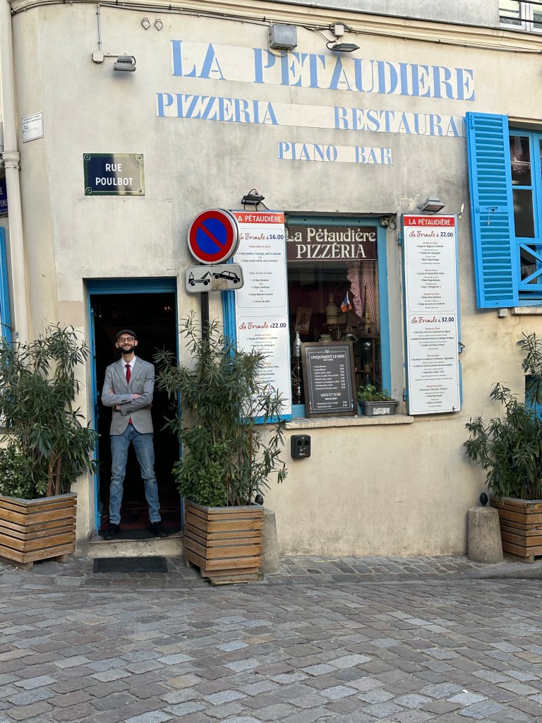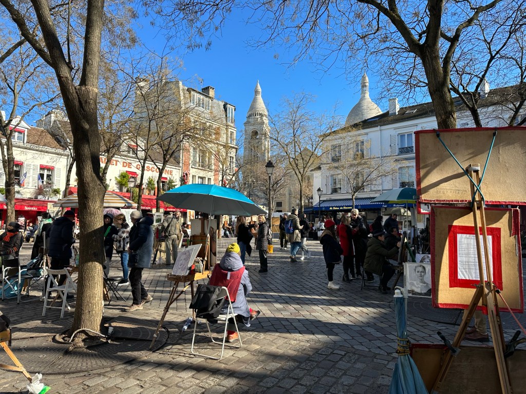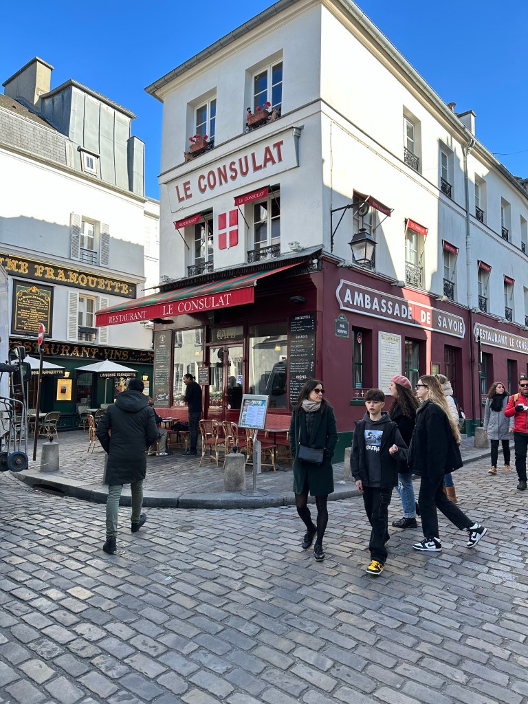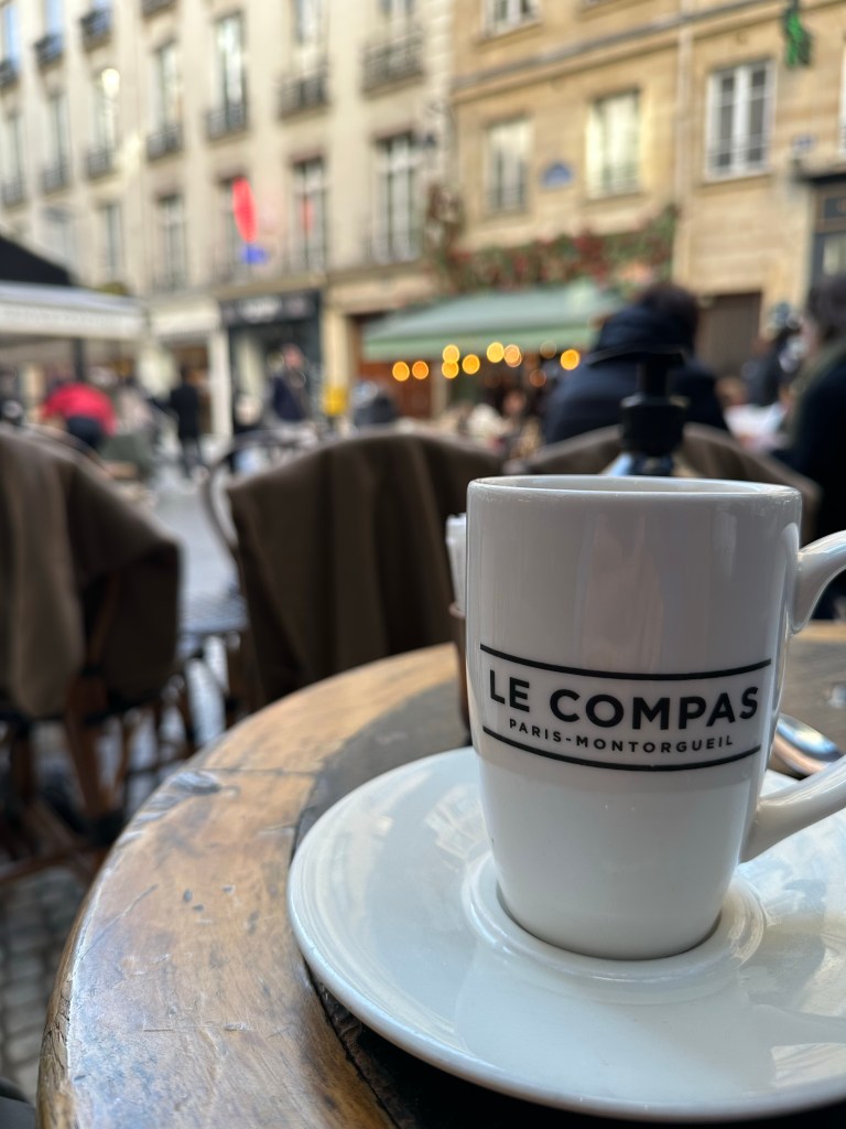 I had planned to make a field trip to Provins, a well persevered medieval town on the outskirts of Paris, but when I got to Gare de l’Est, my train line was suffering from Preturbation and the train I planned to take was perturbed. the next one was an hour away, so I decided to bail on that and head over to Montmartre. Beautiful chilly morning, walked over the Butte, and down the front side. Then a stop for lunch, followed by continued walking all the way to Montorgueil where I stopped in for a tea at Le Compas. I did end up deciding that after my two weeks in the apartment, I didn’t need an additional week of travel and was able to get on the Delta site and switch to and earlier flight and bump up to business class for and additional $200, a considerable deal on a 10 hr. Flight!
