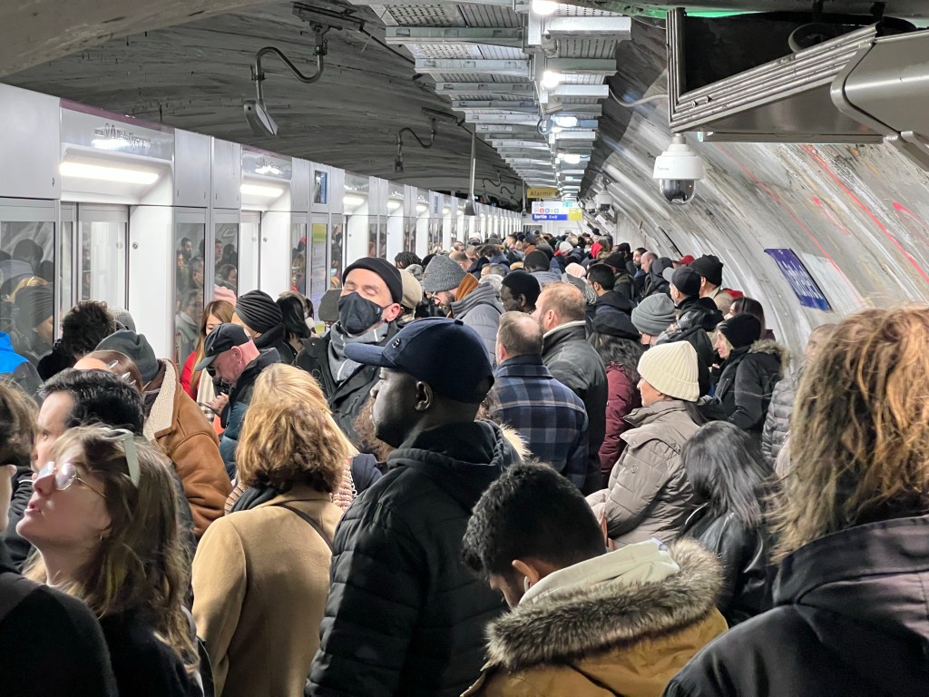 Crowd waiting for line 4, I turned around and walkedMushroom risotto, cafe CharlotPl de la RepubliqueMusee des Arts et MetiersCray 2 super computer, same computing power or more now available on your iPad!Police vans lined upProteresters going by.