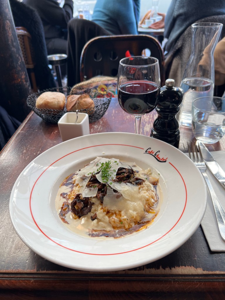 Lines at Musée d’OrsayMushroom RisottoLV store on Rue MontaigneCrowds on the Champs ElyseesHunt and nature museumPastis at Deux MagotsEglise St. GermainDeux MagotsNo4 oysters at Avant Comptoir du Mer.Chez George wine bar.