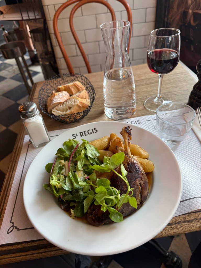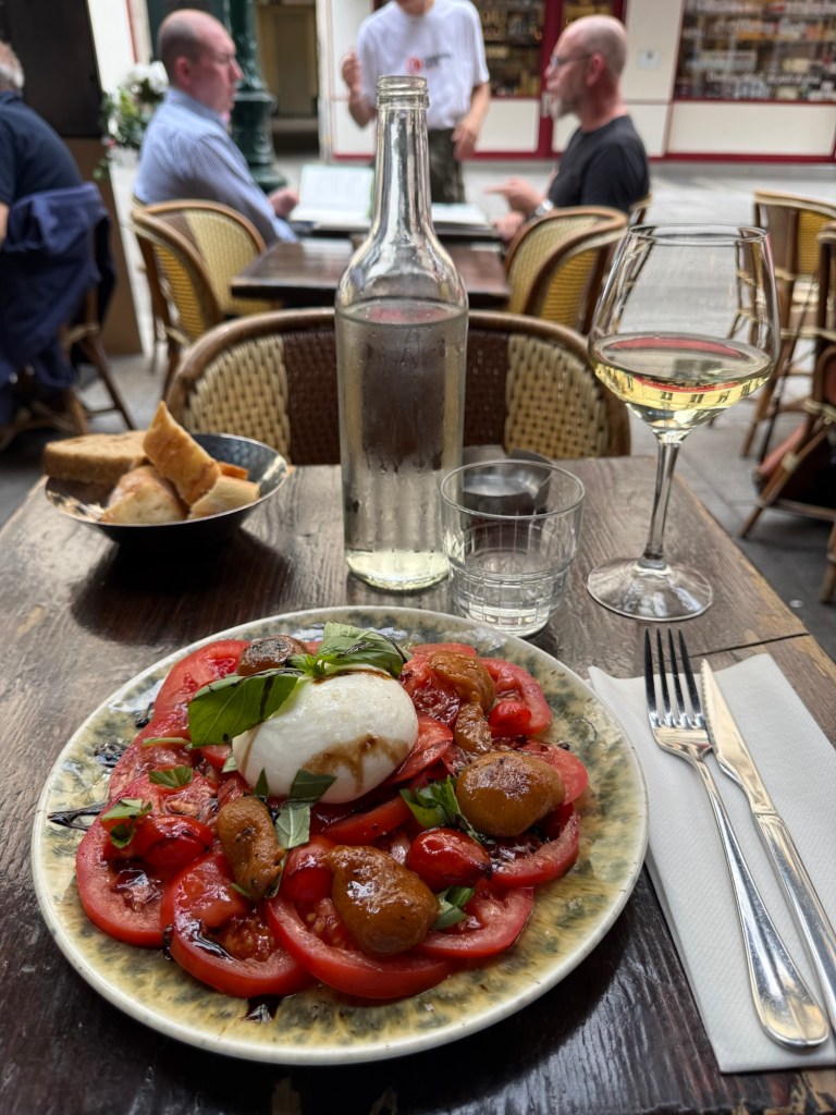 A nice mellow day in Paris today, It warmed up very quickly to the mid 80s. I had some repositioning of gear to do, I keep my poles etc. in a storage place that we have for the fractional so decided to leave some things I won’t need while walking and get some other things out. After a fair amount of walking and excellent Burrata and Tomato salad for lunch. Then a regroup with a short nap, followed by an Apero on Ile St. Louis and an excellent Duck confit at the St. Regis cafe also on Ile St. Louis. Need to be at Montparnasse by 9:30am for train to Hendaye.