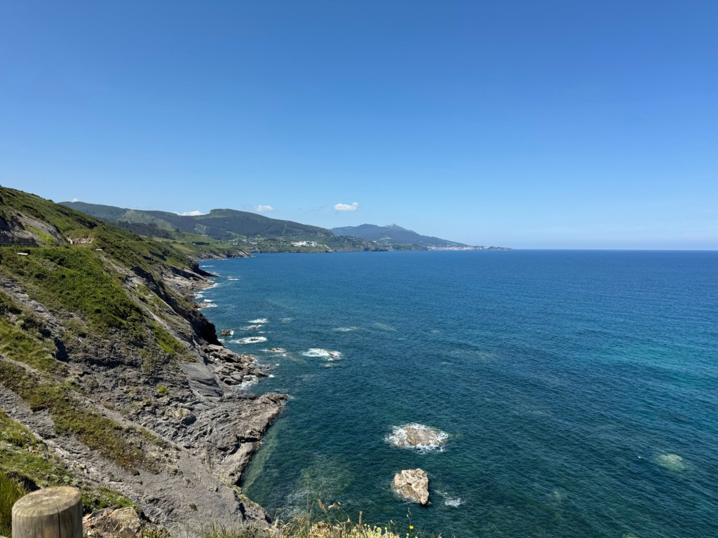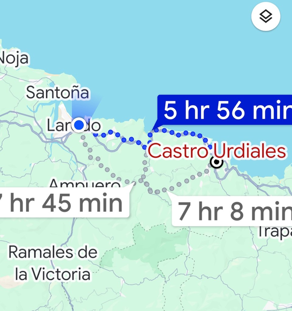 Today felt like a long day. The first part, leaving Portugalete involved riding the escalators up the hill. Then it was a lot of combined bike lanes and pedestrian lanes, so no traffic, but largely along side of freeways and all pavement. After about 3 hrs of solid walking stopped in Las Arenas for a quick snack and then continued on. A beautiful beach which in spite of mid 60s temperatures was being enjoyed by many people. A pretty big set of stairs led up to a coastal path and there were lots of mining remnants from a previous era. At some point I reached a split between the coastal route and the inland route and as I was pausing a number of people were waiting for a bus to Castro Urdiales. At this point I think I had walked about 20km and my feet were definitely sore, as I was debating whether to continue, the bus showed up, so hopped on and 15 minutes later was at my hotel! Since tomorrow is scheduled to be much longer than I would like I decided this was a good option, and it gave me a little time to explore the lovely beach side town of Castro Urdiales. See photos below. Step counter reading 34,306 for the day!