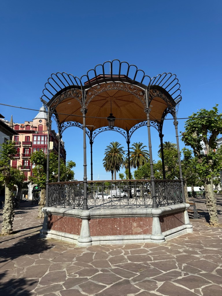 An interesting night in Bordeaux with extremely loud thunder at 3:00am and off an on through till morning. Largely passed by the time I went out for a morning walk. Then the tram to the train station and a train to Hendaye, about 2.5 hrs. The Spanish and French train systems don’t really connect on the Basque coast so the secret to getting to San Sebastián is to take a train to Hendaye and then walk about 50 yards to the Euskotren station where a local train takes about 35 minutes to get you to San Sebastián. From there took a bus to the old town and checked into hotel. After getting situated it was straight out for some Pinxtos and tapas since I had not had any lunch. These little bites are very reasonable with a few bites and a glass of wine typically coming in around 10-12euros then off to another place. A little wet and windy here but will hope for some nicer weather tomorrow.