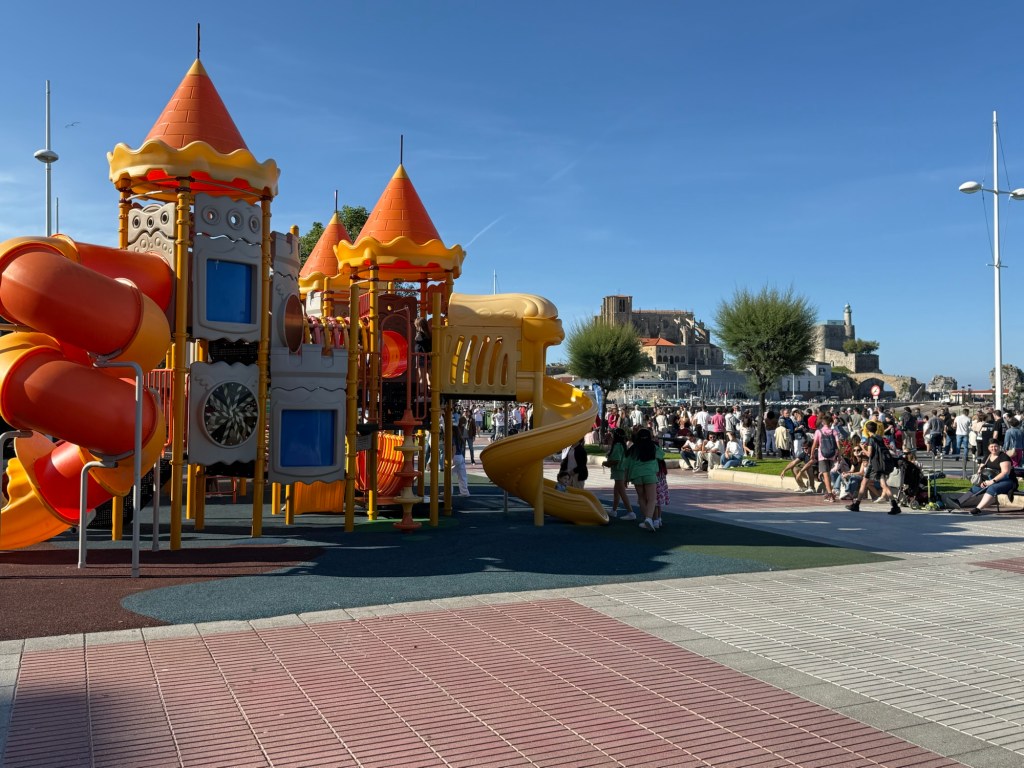 Lots of this!Stairs!Kids castle and adult castleCar show going onTown hallMy hotelBeach promenade.